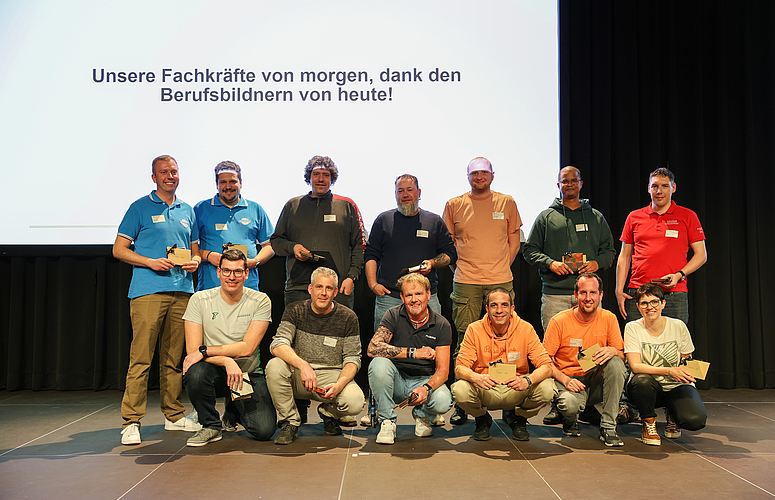 Ein wichtiger Moment der diesjährigen GV der Sektion Zürich war die Ehrung der Berufsbildnerinnen und Berufsbildner. Während des Abendessens wurden zwölf Berufsbildner und eine Berufsbildnerin aus insgesamt zehn Ausbildungsbetrieben auf die Bühne gebeten und für ihr ausserordentliches Engagement gewürdigt.