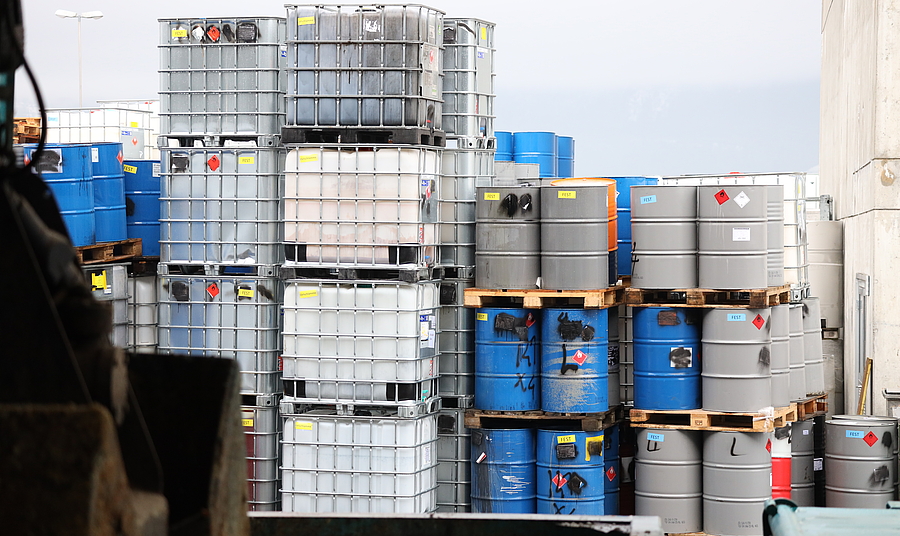 Im Anschluss daran fand sich die Gruppe auf der Stückgutrampe Neuchemie wieder, wo die Kundenaufträge tourenbezogen bereitgestellt und gemäss den geltenden Vorschriften verpackt und verladen werden. Im Anschluss daran zeigte Adrian Minder das Chemielabor, wo die Stoffe jeweils gründlichen Untersuchungen unterzogen werden. Den Abschluss der Tour bildete das Tanklager Anorganik, wo verschiedene Säuren und Laugen gelagert und ständig telemetrisch überwacht werden.
