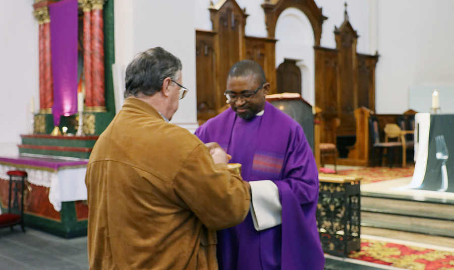 Les participants à l'Assemblée générale se rassemblent devant l'église dans une ambiance décontractée. Peu avant 9 heures, le pasteur Sylvester Ejike Ozioko appelle au culte. Le sermon commence à l'heure prévue. Ensuite, un véhicule ainsi que le drapeau de la section sont bénis, en signe de voyage sûr et d'affaires fructueuses pour l'année à venir.